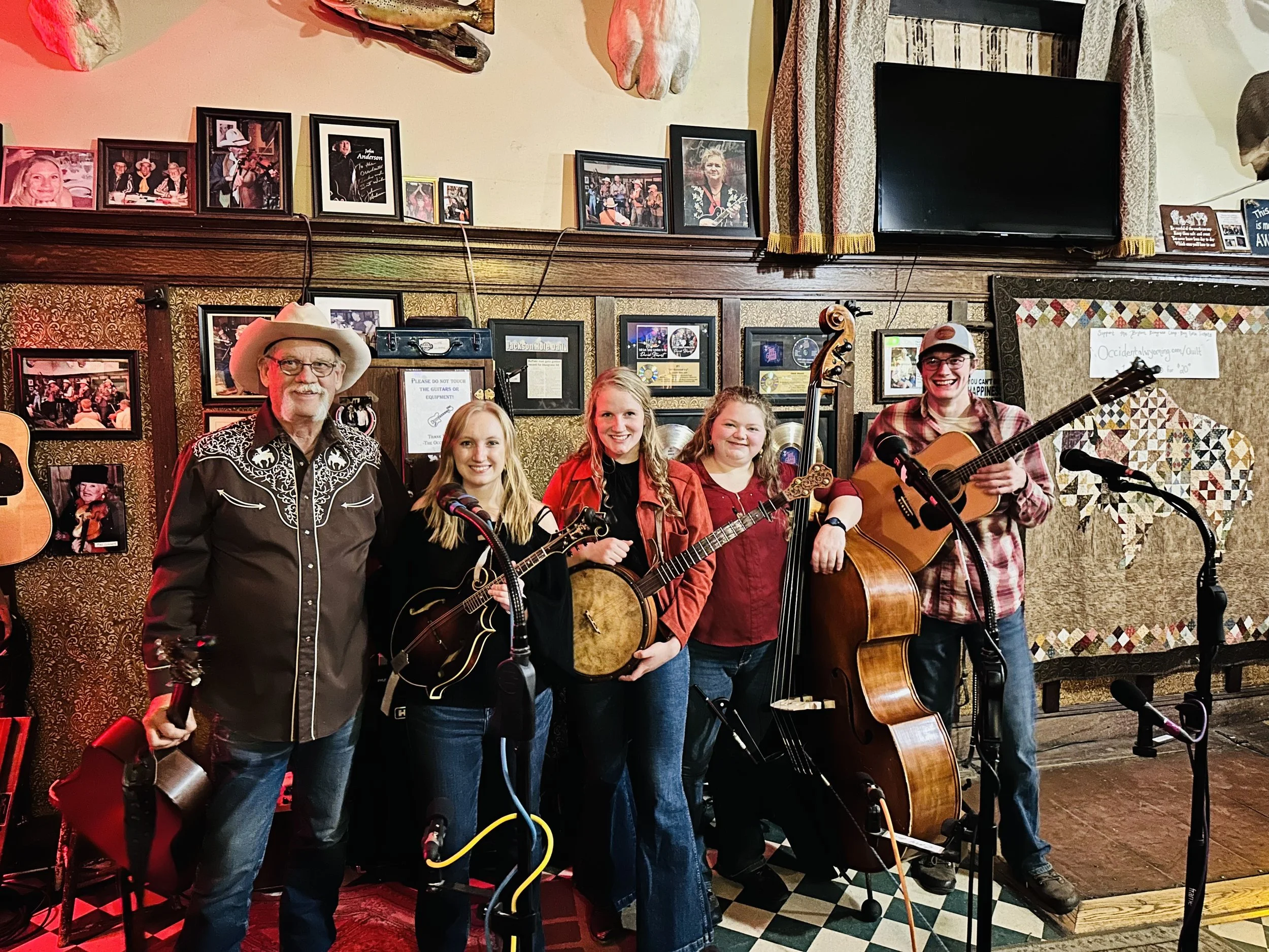 In 2021, we recorded our first self titled album and had our cd release party in the Beer Garden at The Historic Occidental Hotel. It was a well attended event and we were so grateful to be surrounded by so much support by our families, loved ones, and our hometown community of Buffalo, WY. This album had songs including “What Crosses Your Mind” and “Solid Ground” reach the top of the Bluegrass Charts.